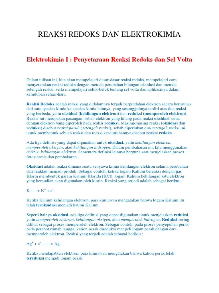 Suatu reaksi oksidasi biasanya disertai dengan reaksi reduksi sehingga . Rangkuman materi bab penyetaraan redoks kelas 12 disertai 35 contoh soal dan jawaban berikut video pembelajaran. Video materi dan contoh soal penyetaraan reaksi redokslink rangkuman, contoh soal senyawa redoks & penyetaraan berikut pembahasannya: . Pengertian reaksi reduksi dan oksidasi, persamaan reaksi redoks, dan cara mencari bilangan oksidasi. Modul ini juga dilengkapi dengan latihan soal untuk menguji pemahaman.
